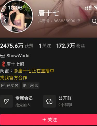 唐十七(抖音号868836990)?这个河北姑娘靠着独特的形象和稳定的内容输出,在抖音积累了100万粉丝,点赞量都破了2200万。