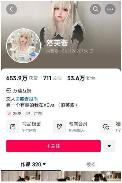 落英酱耶(抖音号:86319620766)?这个26岁的广东姑娘,靠着独特的“甜酷反差风”,在抖音积累了74万粉丝,点赞数都破了千万。