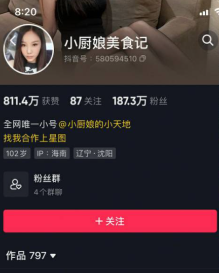 小厨娘美食记,看id你会以为她是分享美食的女博主。刷她的视频就被那地道的东北口音吸引住了。”咱今天整个硬菜!”——听着特别亲切,就像邻居家闺女在跟你唠嗑。这个1998年出生的沈阳姑娘,愣是靠着一口锅、一个镜头,在抖音上收获了198.3万粉丝。