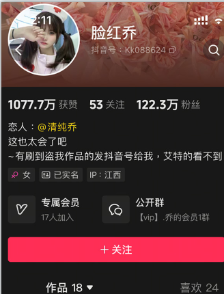 第一眼就看到脸红乔的时候,就被干净的气质吸引住了。这个21岁的江西姑娘在抖音上有89.8万粉丝,大家都爱叫她”清纯乔”——这个昵称确实很贴切,看她日常的穿搭分享,就像邻班那个总是穿着得体的女同学。