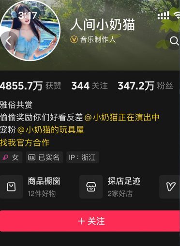 不同于市面上常见的颜值博主,“人间小奶猫”的账号背后有着扎实的专业基因。作为一名音乐制作人,她并没有将才华局限在录音棚里,而是将其转化为短视频中的核心流量密码。她的IP属地浙江,似乎天生就带着江南的灵秀与时尚策源地的敏锐,而她关注的338个账号,则构建起了一个垂直领域的协作网络,暗示着其在内容创作上的深耕与布局。
