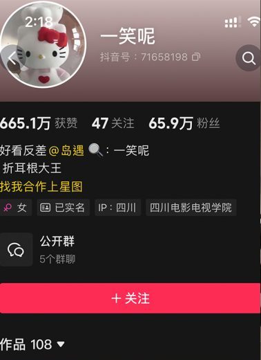 经常刷抖音的朋友,要是对反差感内容感兴趣,多半刷到过「一笑呢」——抖音号71658198,一个22岁的四川妹子,把“反差美学”玩得明明白白,凭着与众不同的视觉叙事方式,在抖音圈稳稳圈粉74.4万,累计获赞更是突破755.6万,实力真的能打。