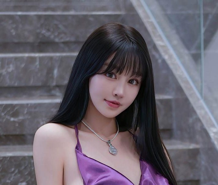 楼梯间的建筑线条为画面添了几分利落感,水泥墙面的粗糙质感与朱可儿的柔媚形成巧妙对比。自然光从楼梯转角渗透进来,在她身上投下明暗交错的轮廓,恰好勾勒出紫色吊带短裙的精致剪裁——肩带贴合肩颈线条,裙摆长度利落露出腰线,与外层黑色包臀裙形成层次感,既不会显得臃肿,又能完美凸显腰臀的饱满曲线,将“前凸后翘”的身材优势展现得淋漓尽致,不愧是被称赞为“上帝精心雕琢”的好身材。